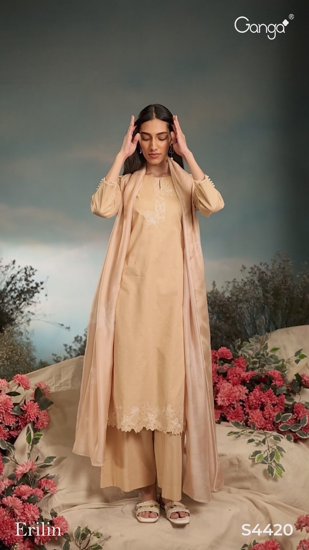 FABRIC DETAILS TOP BOTTOM DUPATTA NOTE: BUY GANGA ERILIN S4420 SUITS ONLINE FROM BRAND GANGA FASHIONS AT WHOLESALE RATE. |
